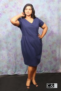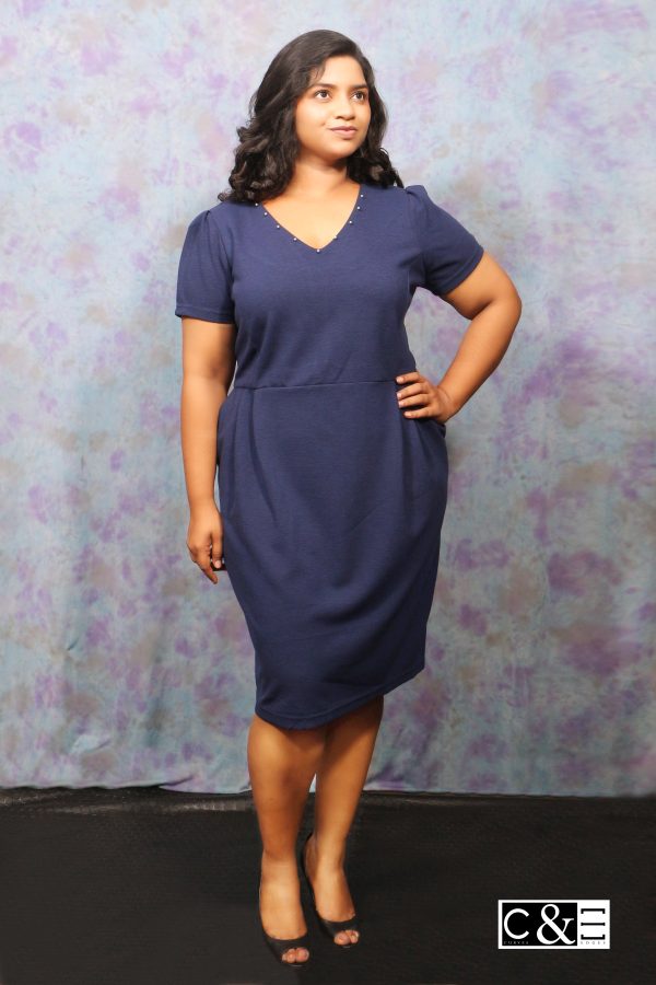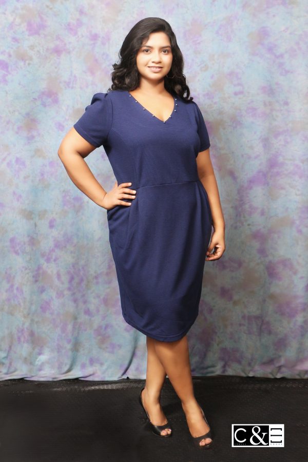 Navy Blue v Neck Skater Dress