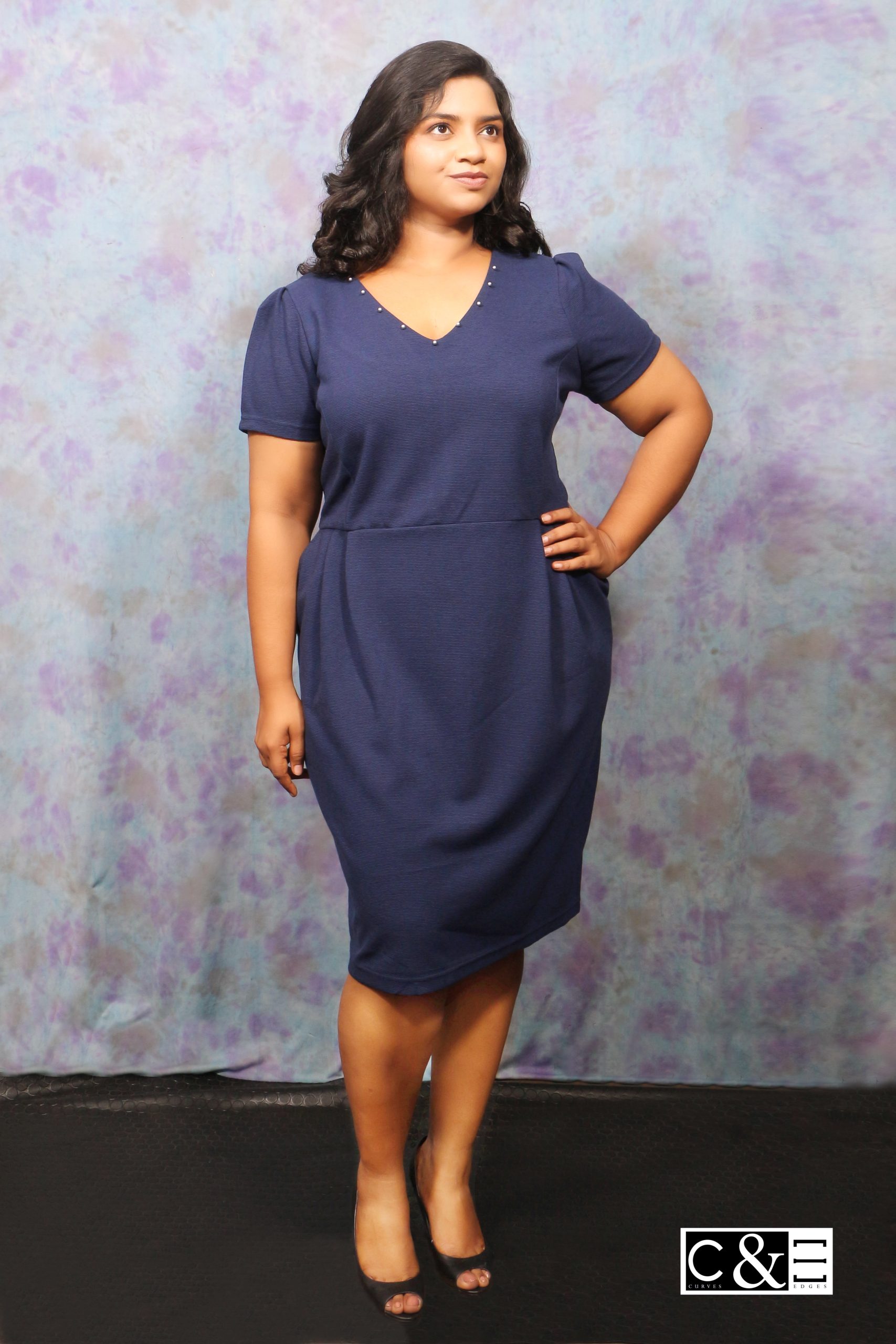 / Navy Blue v Neck Skater Dress